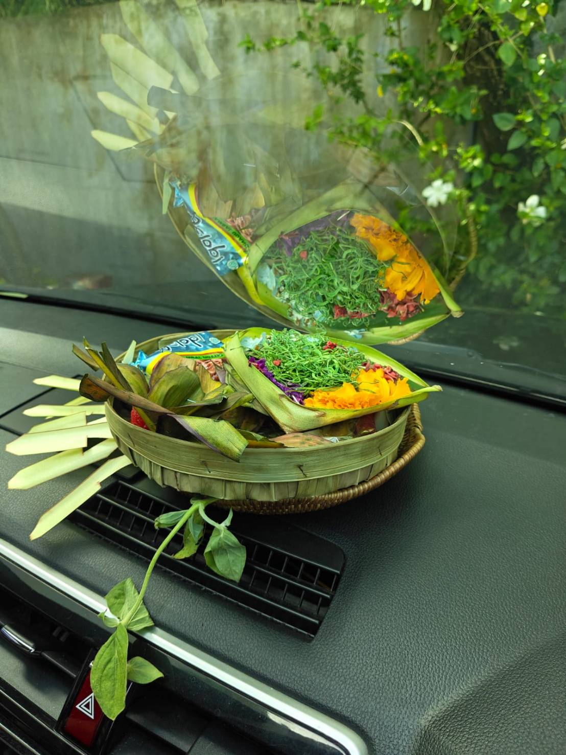 さらに、車にはバリらしいお供え(チャナン)が飾られていることも🌺